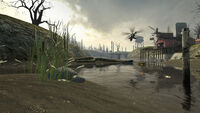 Aboard the Airboat, Gordon fights off numerous Civil Protection units and a Hunter-Chopper in the river, canals and industrial areas around and exterior Metropolis 17. Forth the way, the boat is upgraded with a pulse gun by a Vortigaunt. Afterward shooting down the Hunter-Chopper in a fight, Gordon Freeman finally reaches his destination, an abandoned hydroelectric power found on the other side of the dam where Blackness Mesa East is located.